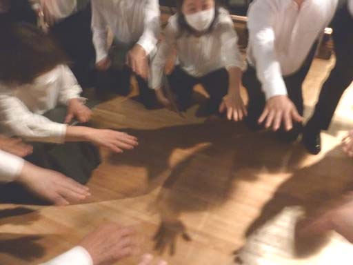 | 16:40 舞台袖で恒例の「円陣」 この手 誰の手 気になる手! |