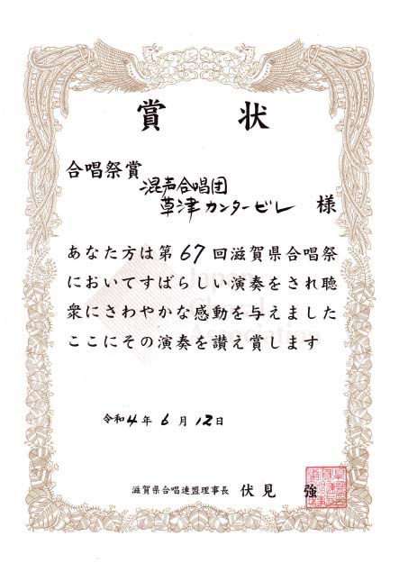 合唱祭賞受賞 表彰式
